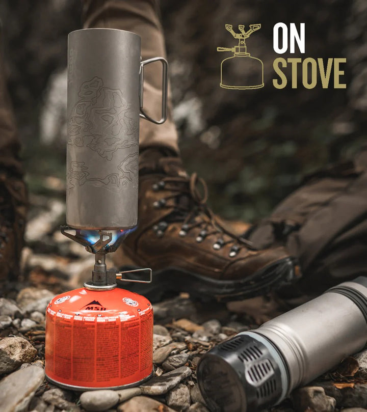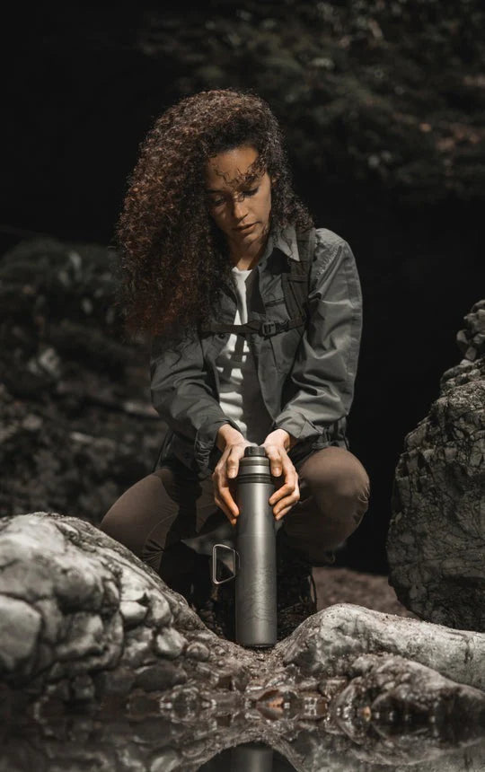 Unequalled versatility. That's Grayl Ti. Filter and purify by the water’s edge and bring it back to camp to boil alongside hot coals, or place it direct on a backpacking stove. It's the world's first titanium water filter bottle and also the first to be compatible with electrolyte and drink-mixes.
