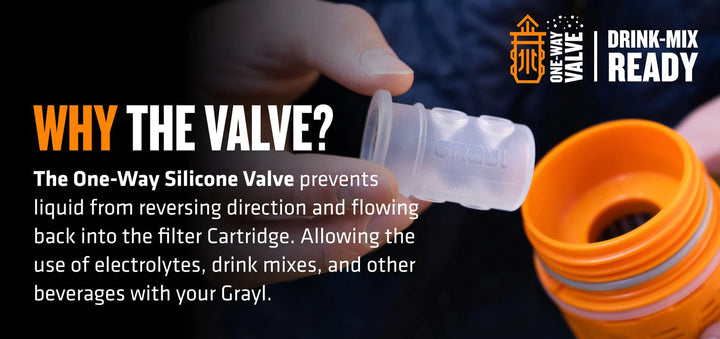A feature no other drink-thru filter bottle can deliver, our One-Way Valve for the UltraPress® allows electrolytes and sport drink mixes to be added to clean purified water without compromising the integrity of the filter. Also allows your UltraPress to be used with a variety of flavored drinks such as juice, bubbly water, mocktails and cocktails.